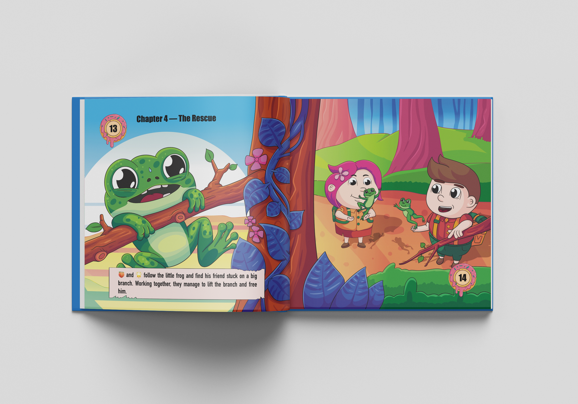 When a fallen tree blocks their way, they venture into the forest, where they meet a tiny frog 🐸 in need of help. Together, they learn that kindness, teamwork, and curiosity lead to the most wonderful surprises!
